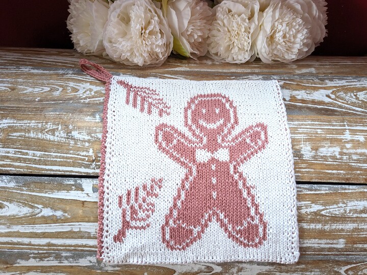 Seit kurzem hat der Lebkuchenmann eine Herzensdame gefunden. Hier geht es zur Anleitung für die Lebkuchenfrau: https://www.crazypatterns.net/de/items/112668/strickanleitung-topflappen-waschlappen-lebkuchenfrau-in-doubleface