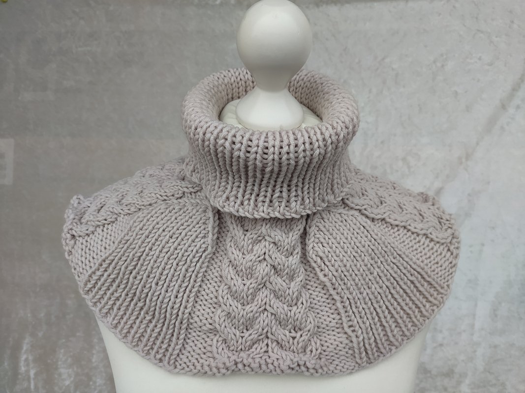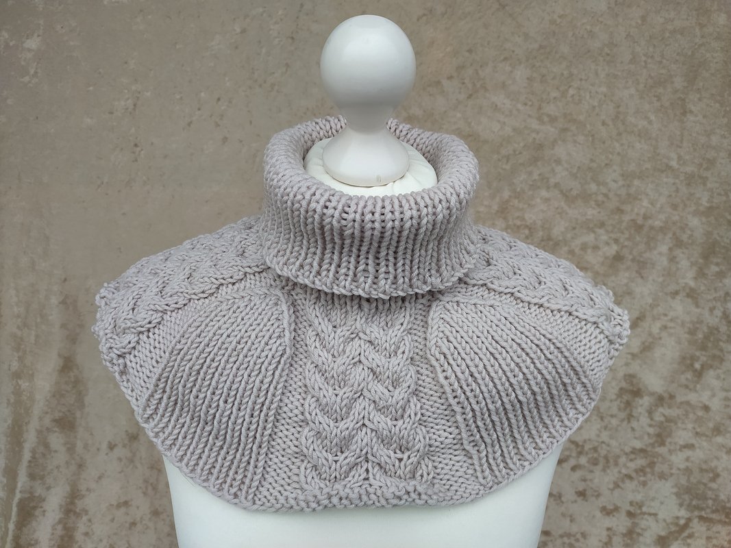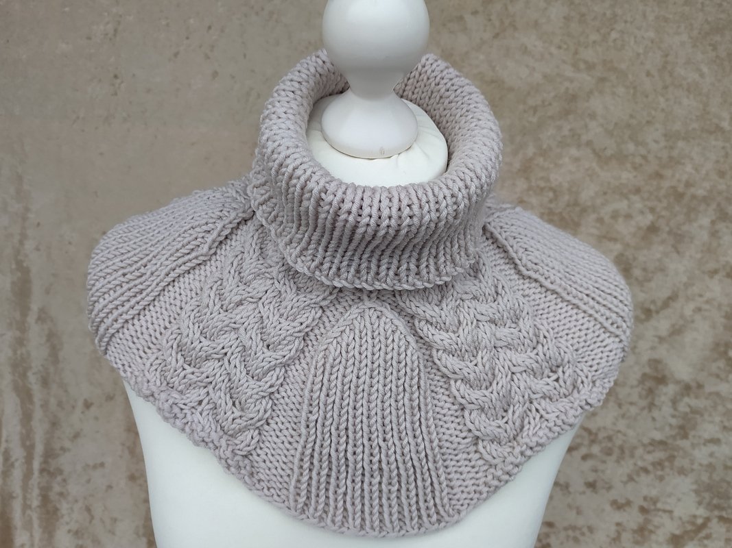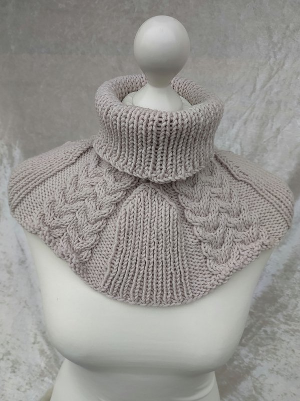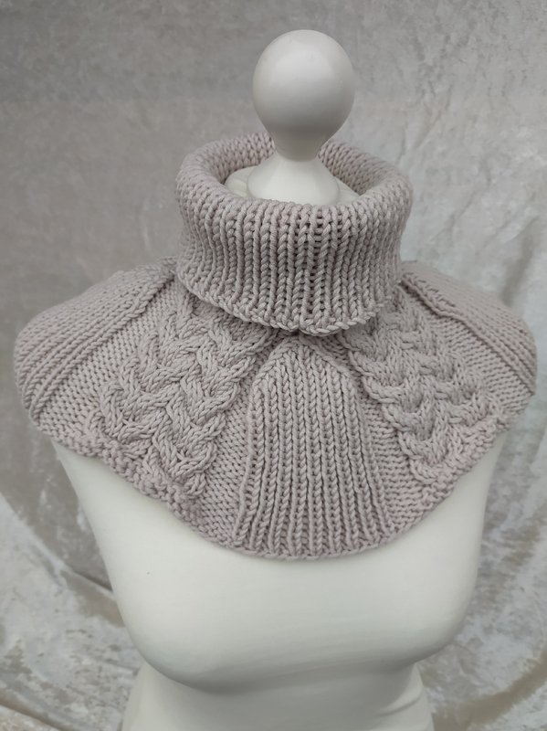 Wollig warm liegt er am Hals, Nacken und Schulterbereicht an und schützt vor Wind und Kälte. Er wird nur übergezogen und ist eine schöne Alternative zu Schal oder Loop.