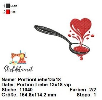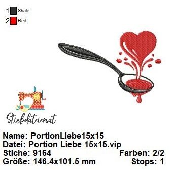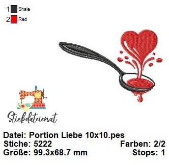 Tauche ein in die süße Welt der Stickkunst mit diesem bezaubernden Liebeslöffel-Motiv! Dieser Löffel versprüht nicht nur Liebe, sondern scheint sie förmlich aufzulöffeln. Hier sind die Highlights: