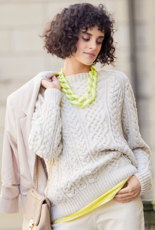Ein klassischer Alltagsbegleiter im aufregenden Design. Dieser traumhafte Pullover hat alles, was man sich nur wünschen kann: Der lässige gerade Schnitt umspielt die Figur, wärend das spannende Zopfmuster richtig Spaß beim Stricken macht. Auch die Schnittform bringt echtes Strickvergnügen, denn Raglanabnahmen sind einfach fantastisch. Die Anleitung kann in den Größen 34/36, 40 und 44/46 gearbeitet werden. Gestrickt wird mit einem wunderbaren Merinomischgarn und Nadelstärke 3,5 und 4,5. Genaue Beschreibungen der Muster und Arbeitsschritte, ein detailierter Schnitt und ausführliche Strickschriften machen die Anleitung komplett. Du kannst direkt loslegen und die Nadeln klappern lassen.