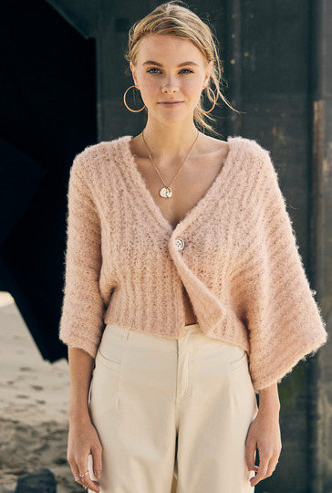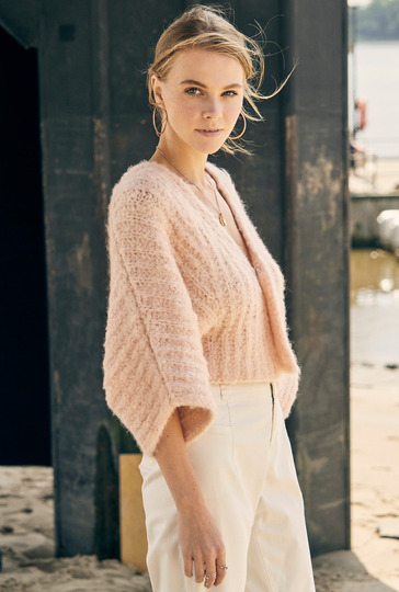 Zart und fluffig wie eine Wolke und dabei so elegant. Diese bezaubernde Jacke mit taillenkurzer Form ist einfach ein Traum. Durch die lässigen Ärmel in 3/4-Länge, welche direkt mit dem Vorder- und Rückenteilen durch Zunahmen angestrickt werden, entsteht eine wunderschöne Silhouette. Durch das Halbpatentmuster ist die Jacke superfix fertig und dabei schön kuschelig warm. Zusammengehalten wird sie vorne von einem einzelnen Knopf. Gestrickt wird mit Nadelstärke 9. Auch das garantiert, dass dir die Jacke wirklich schnell von der Nadel hüpft. Das flauschige Garn erhältst du bei WOLL BUTT. Du kannst direkt beginnen und die Anleitung in den Größen 38/40, 42/44 oder 46/48 downloaden.