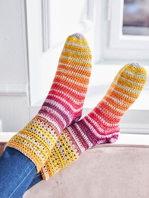 Dadurch können nacheinander zwei identische Socken gehäkelt werden.
