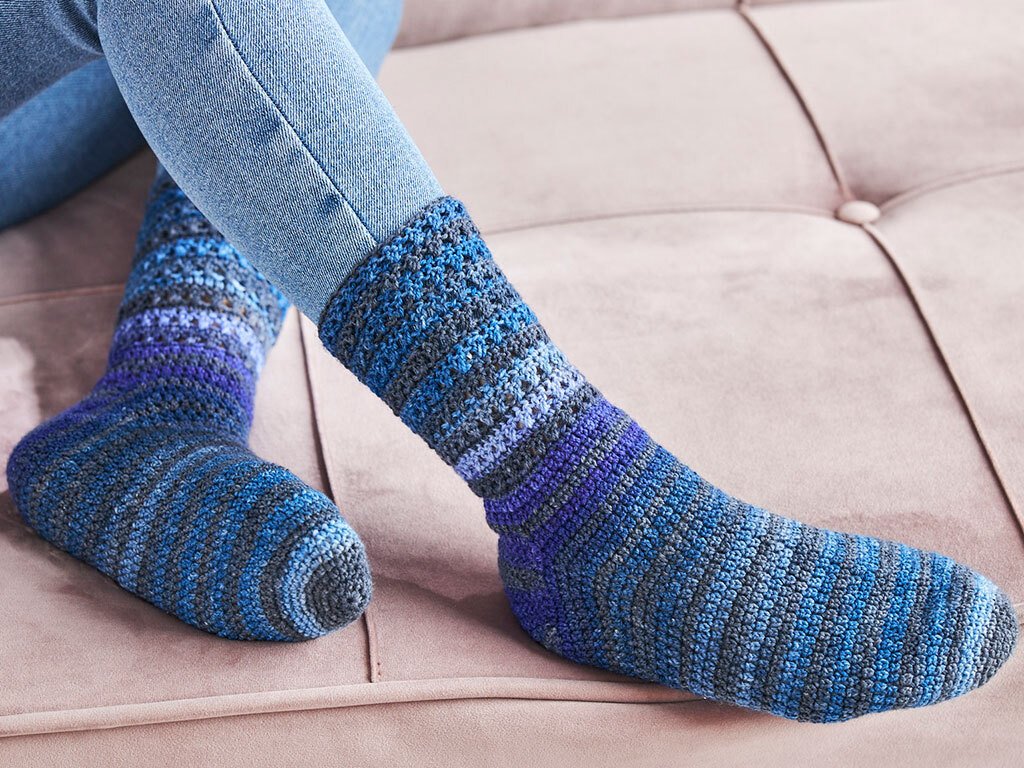 Dadurch können nacheinander zwei identische Socken gehäkelt werden.