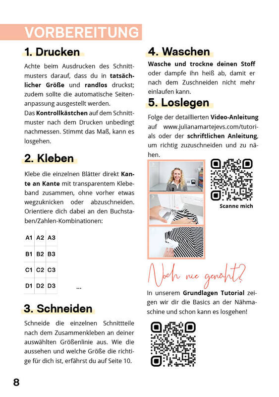 Die Video-Anleitung zum Schnittmuster findest du auf julianamartejevs. com unter Nähanleitungen. Falls du noch nie genäht hast, schau dir als erstes unser Nähmaschinen-Grundlagen Video-Tutorial an. Dort lernst du die Bestandteile einer Nähmaschine kennen und lernst deine erste Naht zu fertigen.