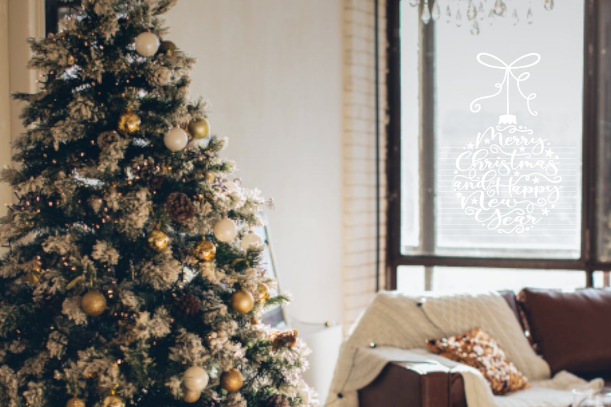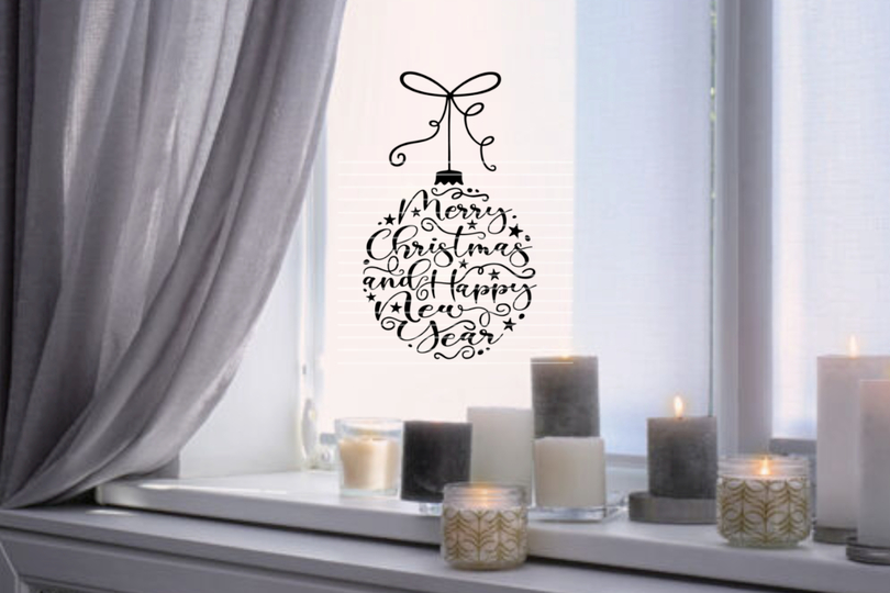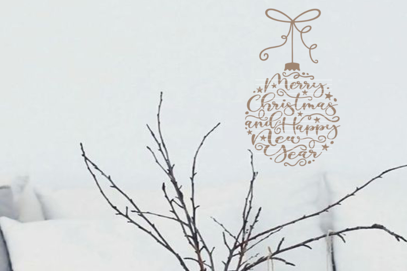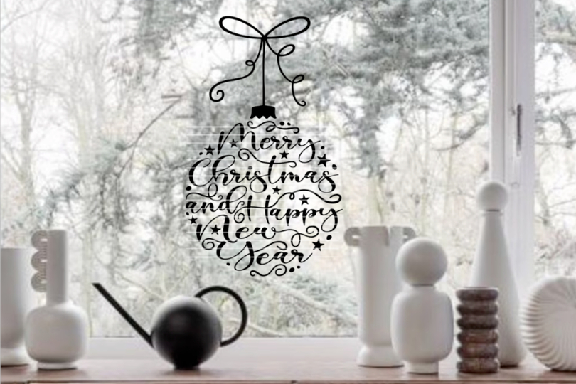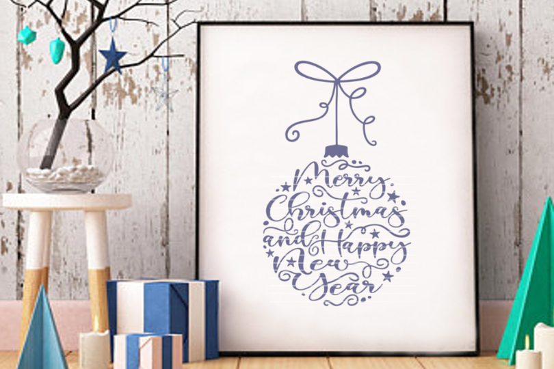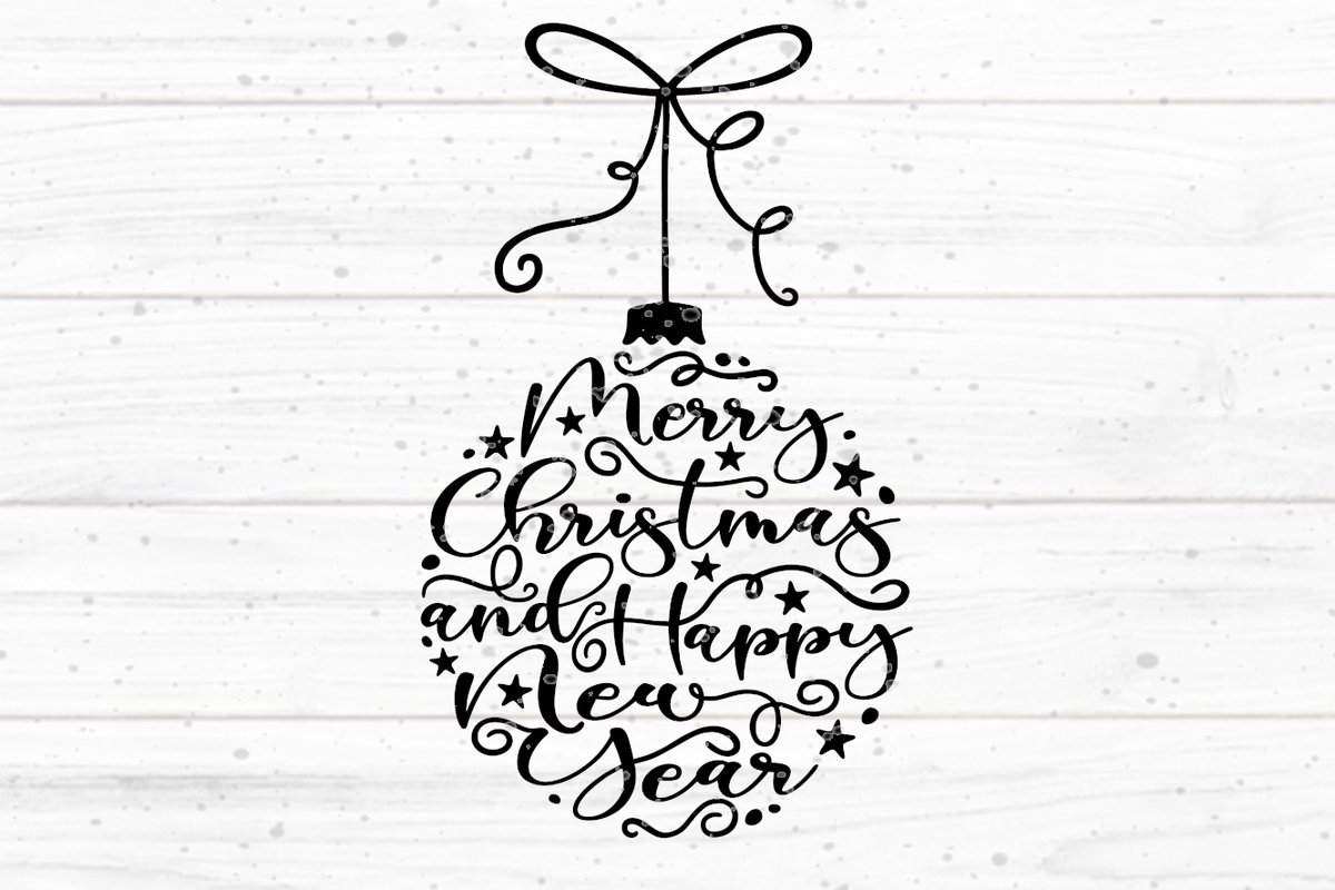 Eine wunderschöne Weihnachtskugel mit dem Text Merry Christmas and Happy New Year