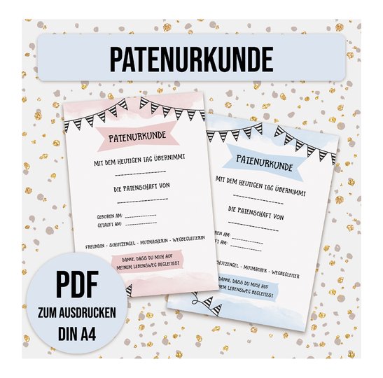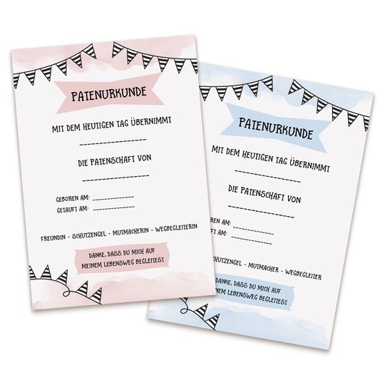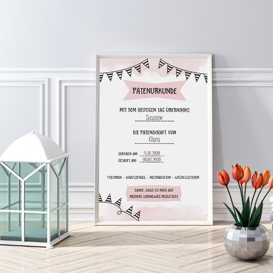 Die gedruckten Urkunden kannst Du dann in einem Bilderrahmen einrahmen und den Paten Deines Kindes zur Taufe schenken.