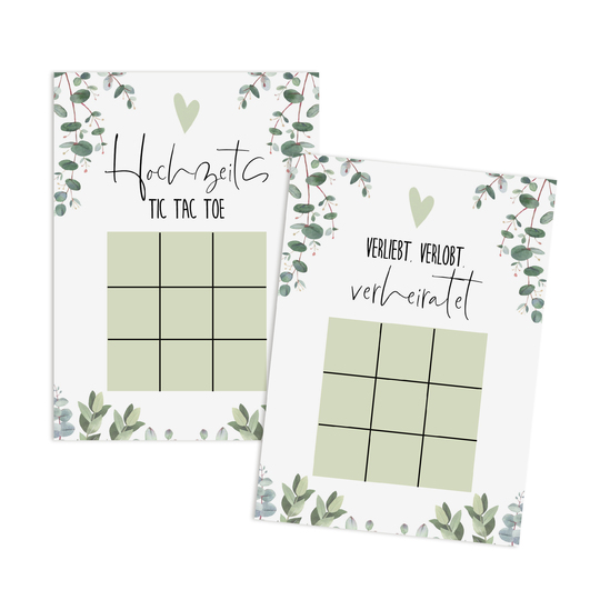 Legt jedem Eurer Gäste eine Tic Tac Toe Karte hin. Ihr könnt kleine Steinchen oder Bonbons in zwei verschiedenen Farben dazulegen, damit Eure Gäste das Tic Tac Toe Spiel mehrmals spielen können. Eure Gäste können das Spiel aber auch klassisch direkt auf der Karte mit einem Stift spielen.