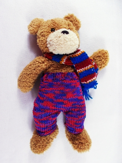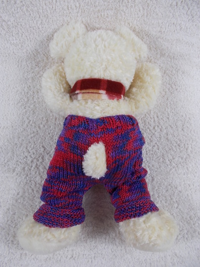 Teddys mögen auch hübsch eingekleidet werden. Und bei der Hose sollte dann unbedingt auch das Schwänzchen hinten herausgucken können.
