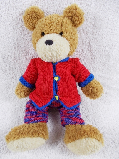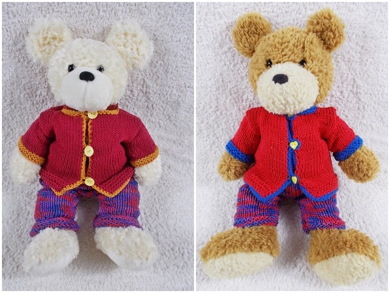 Mit diesem süßen Anzug habe ich einen Wunsch erfüllt und ich finde, der Teddy sieht sehr niedlich darin aus. Ich habe mehrere 30 bis 40 cm große Teddys damit eingekleidet.