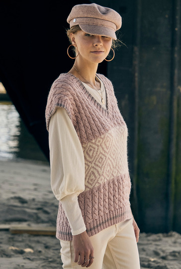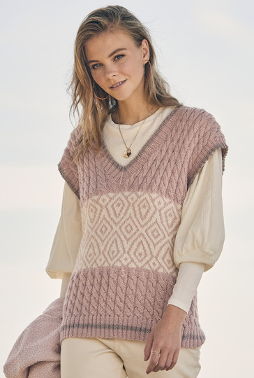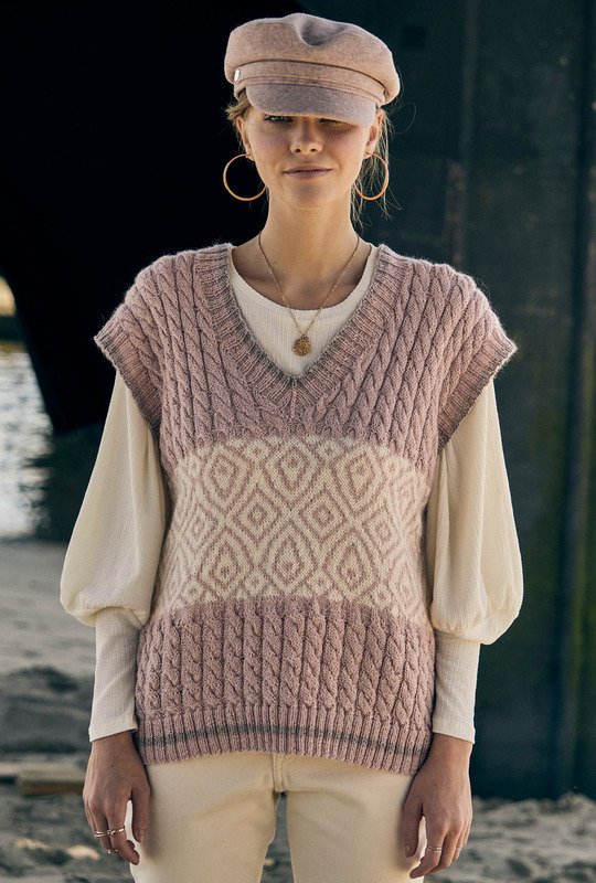 Keine Lust auf Ärmel? Dann strick dir doch einen Pullunder. Dieses Kult-Kleidungsstück feierte in den letzten Jahren ein Revival. Mit dieser Anleitung holst du dir ein ganz besonders schönes Exemplar auf deine Nadeln. Hier ist für Musterfans richtig was los: Ob Zopf oder Jacquards - Es wird spannend beim Stricken. Vorder- und Rückenteil werden einzeln von unten nach oben gearbeitet und später zusammengenäht. Dann folgen nur noch die Bündchen und fertig ist dein sportlich-eleganter Begleiter. Durch die gerade Schnittform kann man sich voll auf das Muster konzentrieren. Mit der ausführlichen Strickschrift und Beschreibung in dieser Anleitung ist das Nachstricken überhaupt kein Problem.