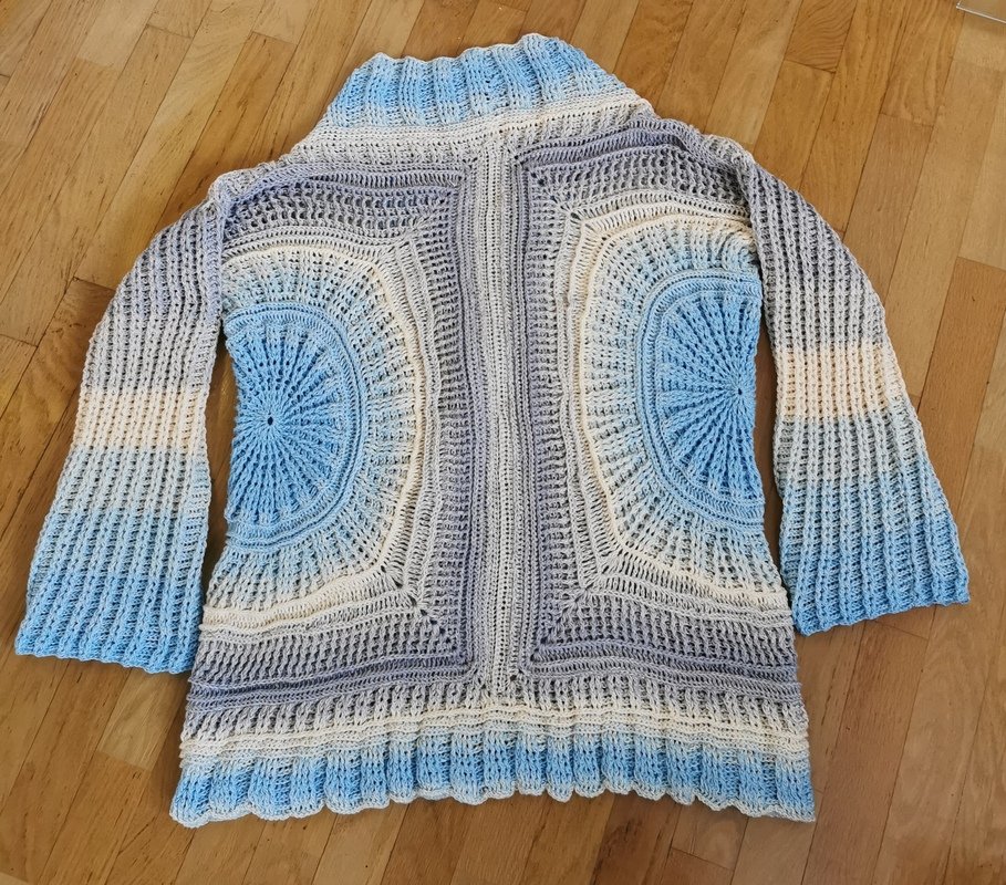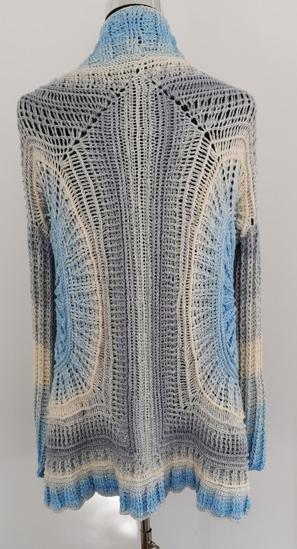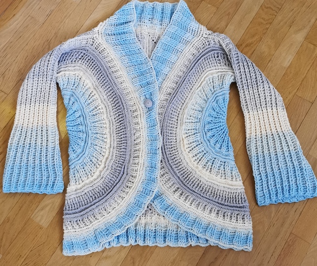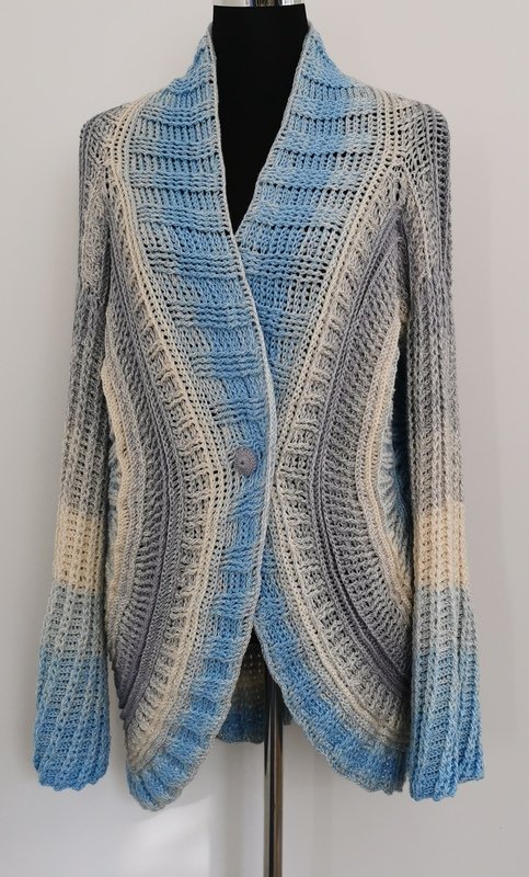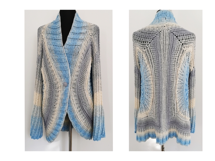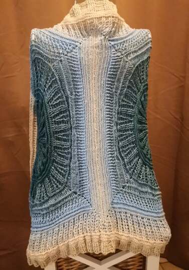 Winter Sky ist eine traumhaft schöne Jacke/Weste, die durch die beiden Kreise, die die Basis bilden, alle Blicke auf sich ziehen wird. Sie lässt sich ganz leicht an alle Größen anpassen.