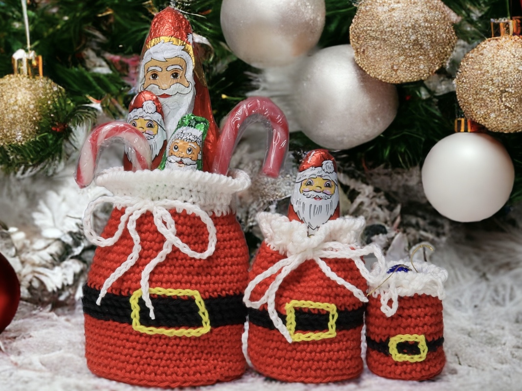 Entdecke diese bezaubernde Häkelanleitung für die festliche Säckchen. Die perfekte Ergänzung für deine Weihnachtsdekoration oder als Last-Minute-Geschenk für Nikolaus! Die Anleitung enthält Muster für Säckchen in drei verschiedenen Größen – klein für Süßigkeiten, mittel für kleine Überraschungen und groß für besondere Geschenke. Verschönere dein Zuhause mit diesen süßen Säckchen als festliche Dekoration, platziere sie auf dem Weihnachtstisch oder im Adventskalender. Fülle die Säckchen mit Leckereien und verschenke sie als süße Aufmerksamkeit an Familie und Freunde.