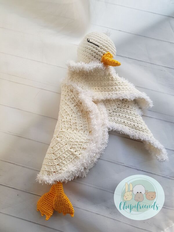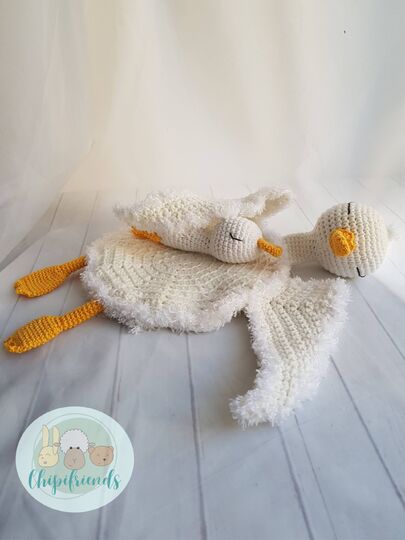 Mit dieser klaren und detaillierten Häkelanleitung kannst du diese Mama-Schmusetuch-Ente und ihr kleines Entenbaby herstellen.