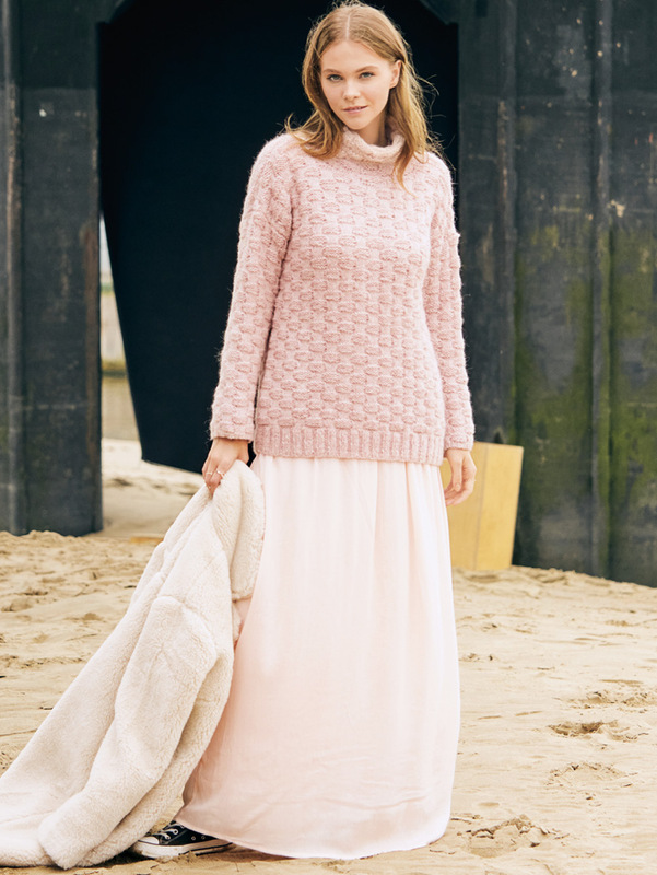 Dieser tolle Pullover ist wirklich ein kuschelig warmer Safe Space an kalten Tagen. Das plastische Korbmuster macht richtig was her und ist gar nicht schwer zu stricken. Die gerade Form und die überschnittenen Schultern machen die Nacharbeitung zum Kinderspielt. Alle Teile werden einzeln von unten nach oben gearbeitet und zum Schluss zusammengenäht. Zum Schluss wird der kuschelige Rollkragen angestrickt, der diesen Pulli so richtig bequem mach. Das flauschige Garn erhältst du bei LANA GROSSA. Du kannst direkt beginnen und die Anleitung in den Größen 36/38, 42/44 und 48/50 downloaden. Schnapp dir deine Stricknadeln in Stärke 5 und 6,5 und los geht´s.