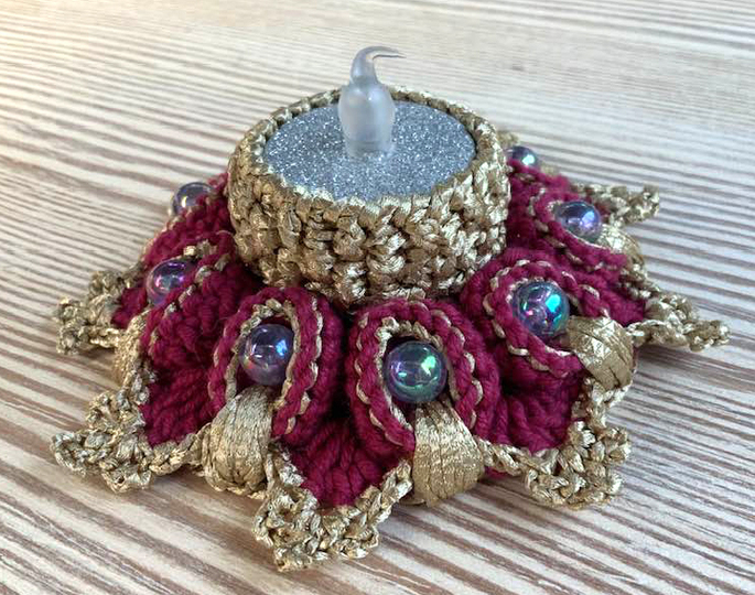 Kleinere Mengen von fertigen Feierlichen Teelichthaltern (bis 5 Stück)...dürfen mit Hinweis auf die Designerin (Petra Perle) auf Weihnachtsmärkten und Handarbeitsmärkten gerne verkauft werden!!! Bitte NICHT zu billig sein!