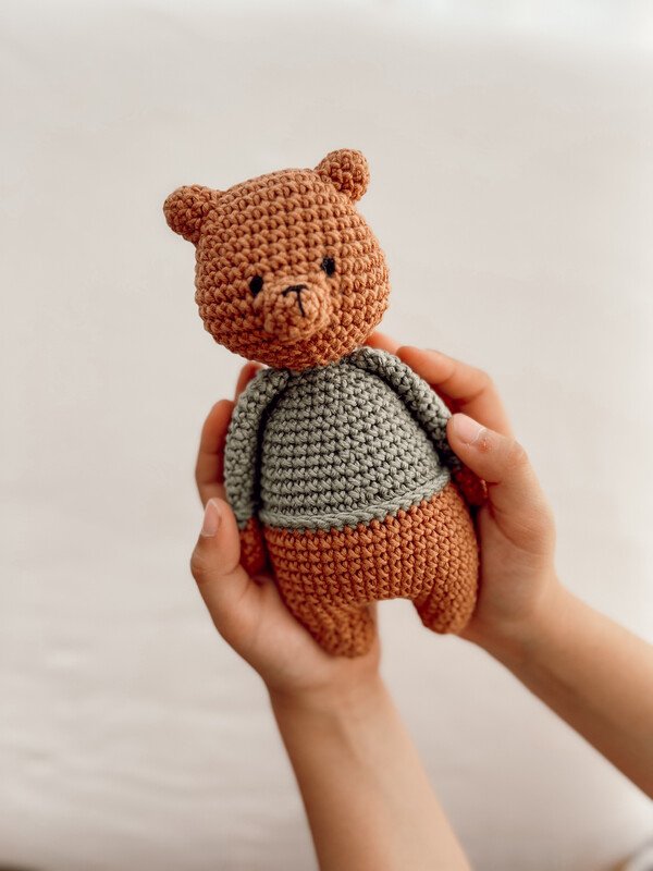 Mit dem Baumwollgarn 50 g 105 m wird Balou ca. 19 cm groß.