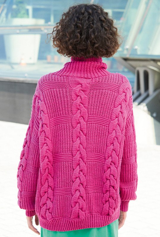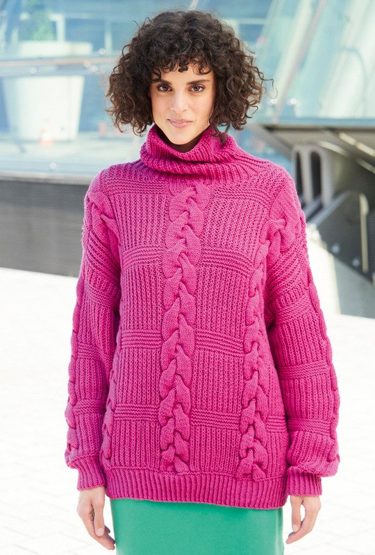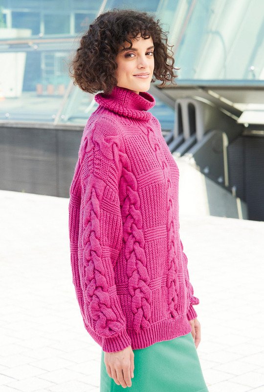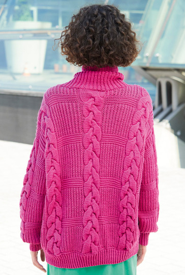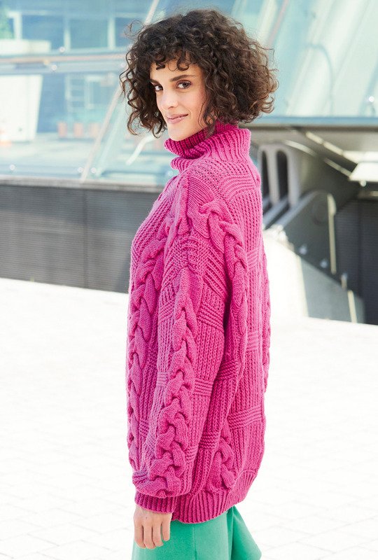 Hat jeman Zopf gesagt? Hier kommt ein Pullover mit einem echten Wow-Zopf. Eingerahmt durch ein dezentes Strukturmuster kommt hier der Zopf in der Mitte richtig gut zur Geltung. Das tolle Garn dazu gibt es bei LANA GROSSA, gestrickt wird mit Nadelstärke 3,5 und 4,5. Durch den geraden Schnitt und die Oversize-Passform kannst du dich beim Stricken auf der Couch völlig auf das Muster einlassen. Die Armaussschnitte sind dank der detaillierten Anleitung mit Beschreibung aller Arbeitsschritte überhaupt kein Problem. Alle Teile werden einzeln von unten nach oben gearbeitet und dann zum Schluss zusammengenäht. Die Anleitung beinhaltet die Größen 38/40, 42/44 und 46/48.