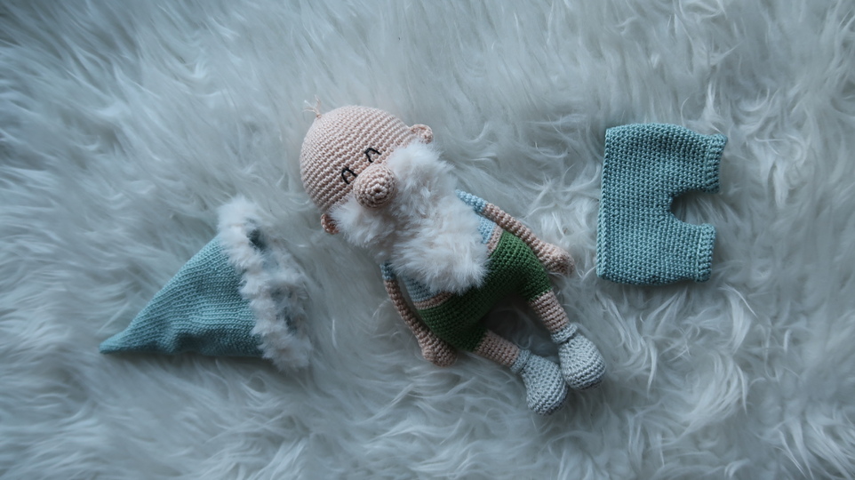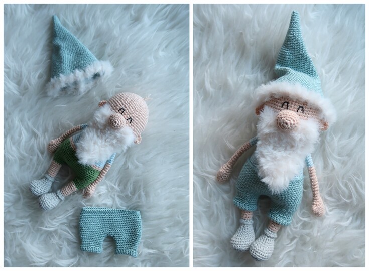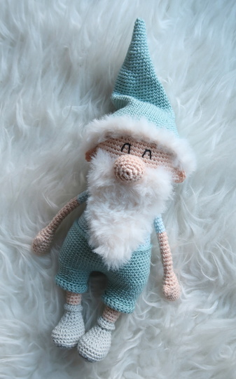 Wenn du mit Baumwolle (125m LL auf 50g) häkelst, wird dein kleiner Weihnachtsmann ca. 26cm hoch (ohne Mütze).