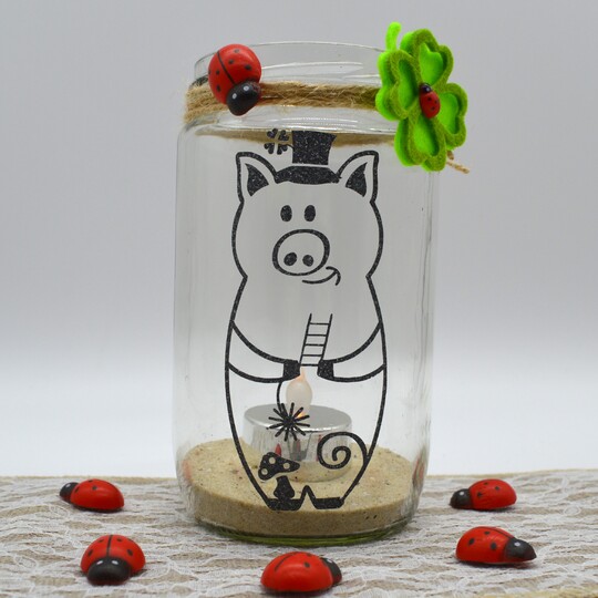 Geschnitten aus Vinylfolie verziert der Schnitt Gläser und Porzellan und alle weiteren, glatten Oberflächen oder auch Karten, Geschirrtücher und Brotzeitbrettchen.