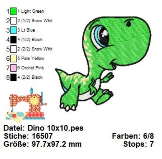 Verleihen Sie Ihren Kreationen mit dem süßen Dino-Stickmuster das gewisse Etwas! Bestellen Sie noch heute und tauchen Sie ein in die magische Welt des Nähens.