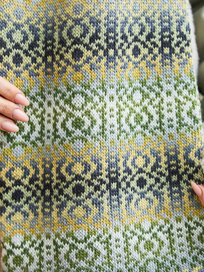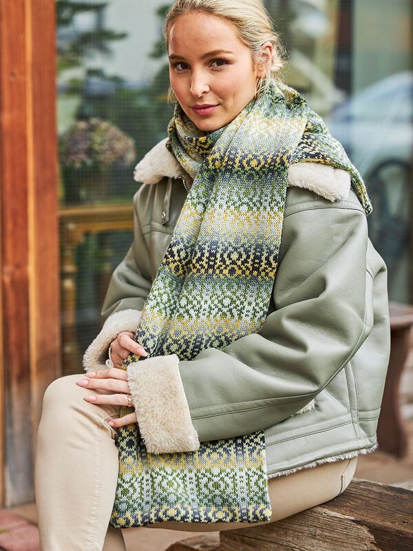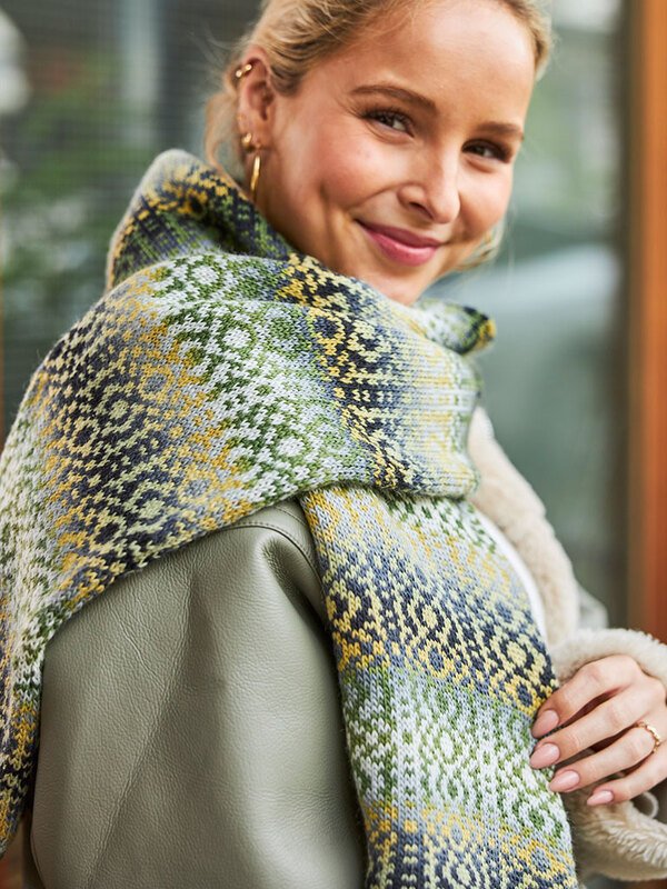 Das Besondere an dieser Stola ist das tolle Jacquardmuster in Norwegertechnik. Dieses Muster sorgt für einen einzigartigen Look und macht die Stola zu einem echten Highlight. Das Muster ist in Runden gestrickt, sodass die Stola schön weich und kuschelig ist.