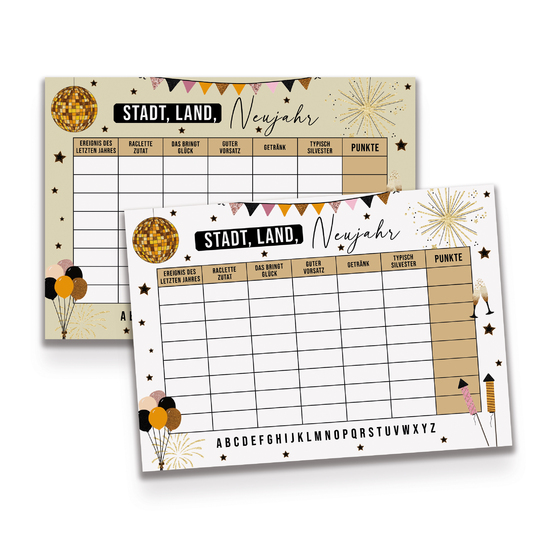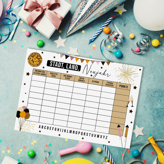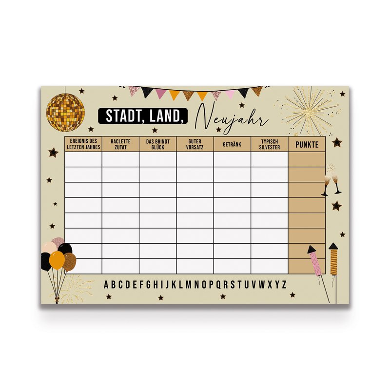 Damit Sie das Spiel Stadt Land Silvester spielen können, benötigt jeder Spieler eine entsprechende Vorlage.