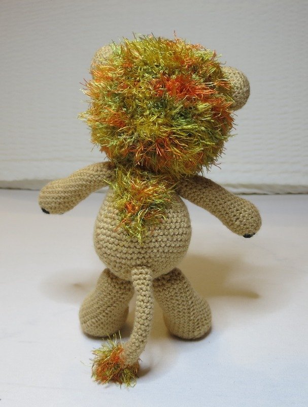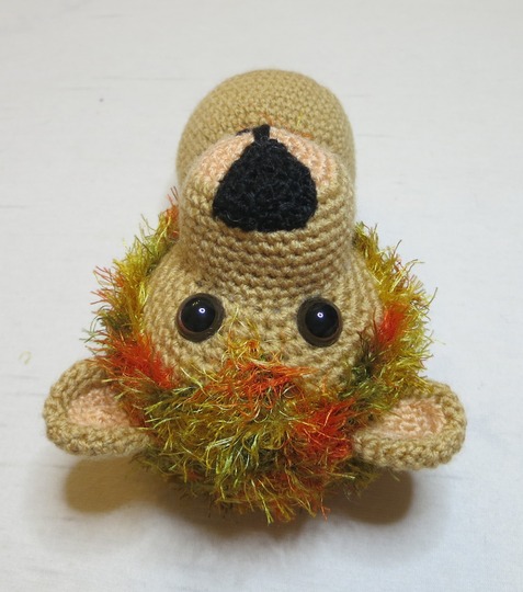 Häkelnadel Nr. 3,5, Wolle 100 % Acryl = ca. 50 g hellbraun, ca. 10 g aprikot, ca. 15 g schwarz