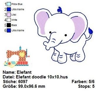 Diese entzückende digitale Stickdatei zeigt einen niedlichen Babyelefanten im verspielten Doodle-Stil. Der Elefant hat ein charmantes Lächeln auf seinem Gesicht. Sein Körper ist mit liebevoll gestalteten Doodle-Mustern verziert, die dem Design eine originelle und moderne Note verleihen.