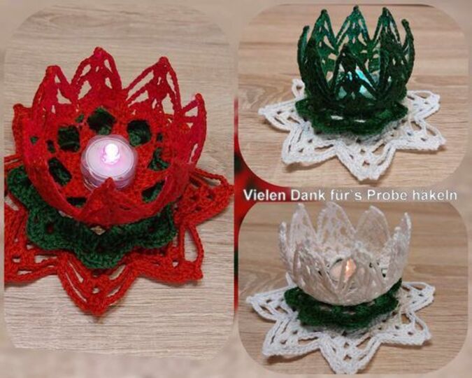 Die Lichter werden vorwiegend mit Luftmaschen und Stäbchen, in abgeschlossenen Runden gehäkelt