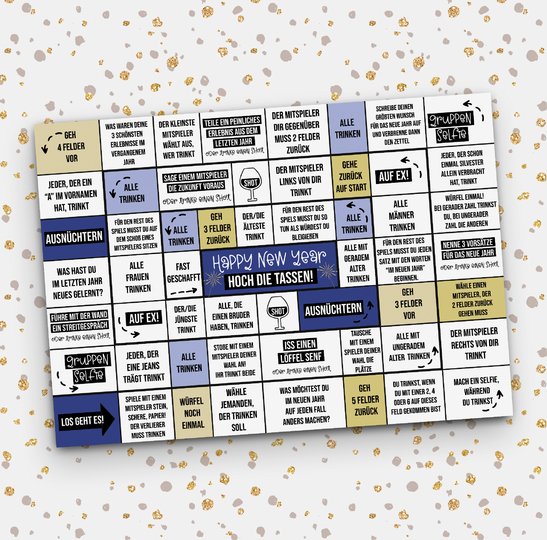 Drucke Dir das Spielbrett als DIN A4 oder DIN A3 aus und schon kann es losgehen.