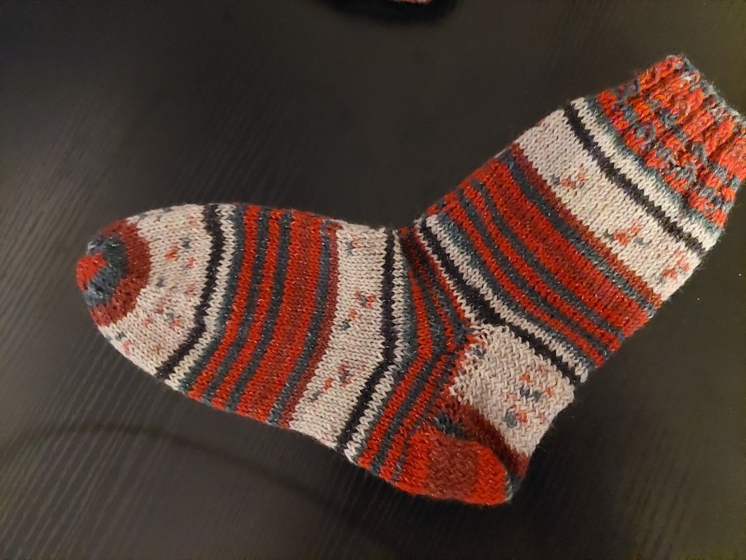 100 Gramm Sockenwolle 4- fach wie z. B. die Christmas Sockenwolle von Rellana Christmas Metallic oder Flotte Socke Christmas.