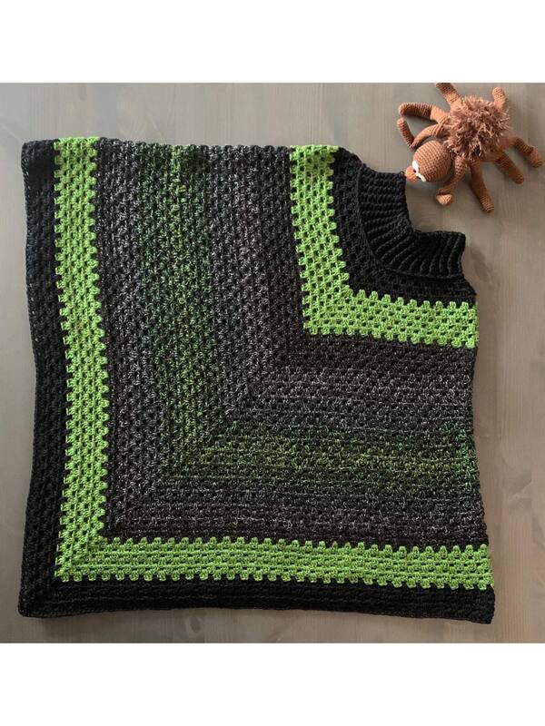 Der Poncho kann auch nur in Uni oder nur im Farbverlauf gehäkelt werden.