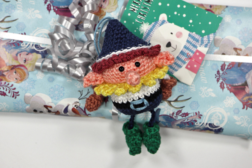 Der kleine Elf eignet sich prima als Geschenk-Anhänger zu Weihnachten oder zum Geburtstag. Er macht sich auch gut als Baumschmuck.am Tannenbaum oder als Anhänger zu Ostern.