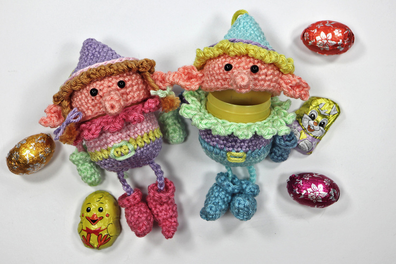 Hier bekommst du eine Häkelanleitung für kleine Elfen oder Wichtel mit Geheimfach zum Befüllen. Du kannst sie dir ganz einfach aus deinen Wollresten häkeln. Damit sie für dich kleine Geschenke oder Nachrichten überbringen können, benötigst du noch Überraschungs-Eier in der normalen Größe. So lässt sich Geld, ein Gutschein, eine Einladung oder eine Botschaft, schön und originell verpacken.