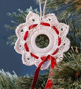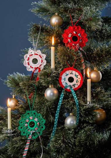 560 m/100 g) in Weiß, Rot und Grün, 4 Häkelringe