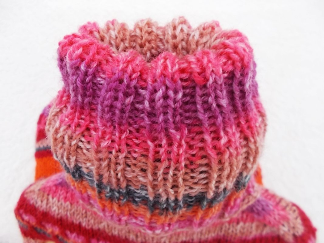 In diesem liebevoll gestrickten Wärmflaschenbezug aus Sockenwolle bleibt die Wärmflasche nicht nur lange warm. Sie fühlt sich auch sehr angenehm temperiert und weich an, genau dort, wo sie gerade gebraucht wird. Damit der Bezug gewaschen werden kann, muss er sich leicht von der Wärmflasche lösen können. Dafür habe ich die obere Öffnung so gestaltet, dass das einfach möglich. Besonders angenehm ist hier außerdem, dass der obere Bereich sehr gut abschließt, so dass auch hier keine Wärme verloren geht.