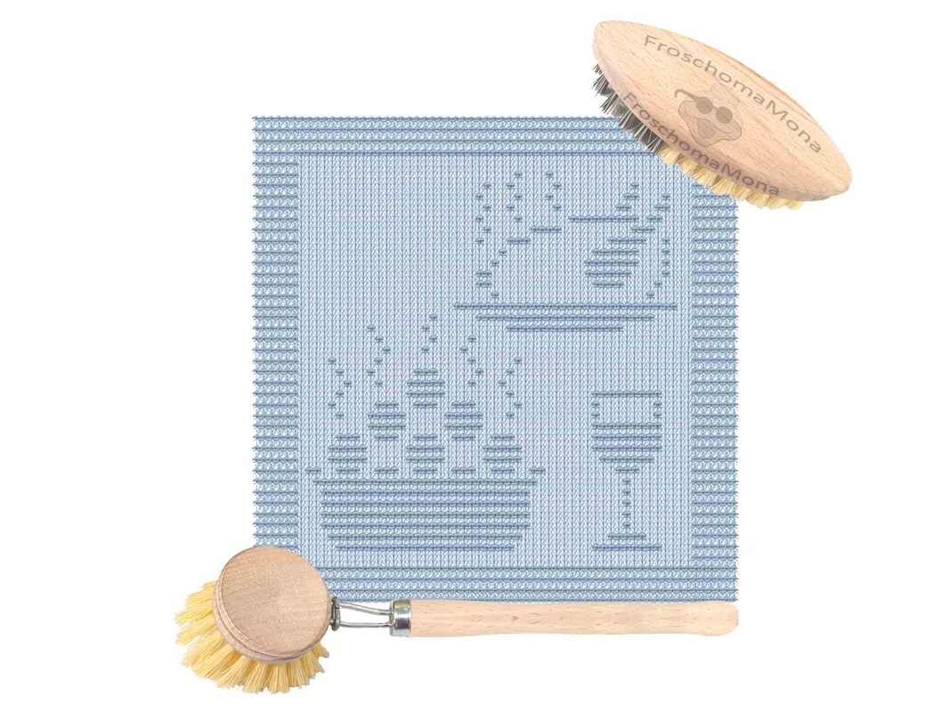 Mit dieser Anleitung zeige ich dir, wie du das Motivdeckchen mit Motiv „ Klöße, Braten und Wein „ stricken kannst.