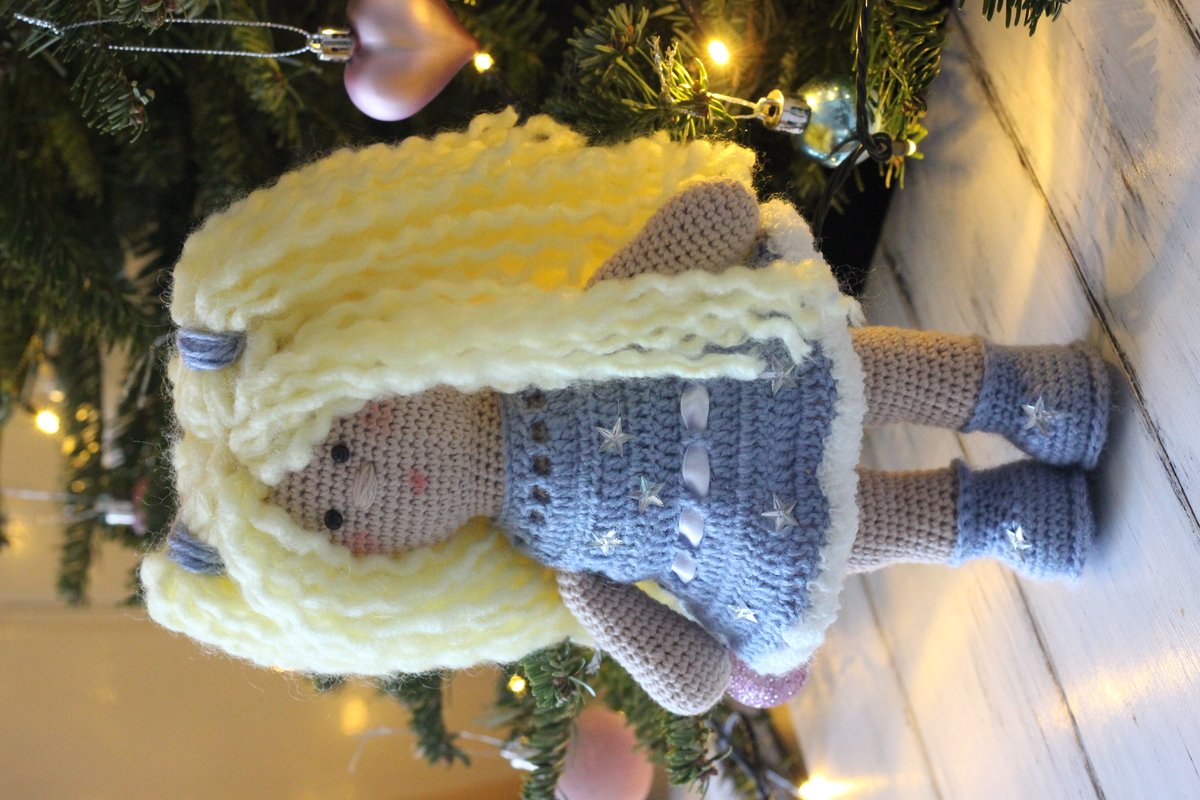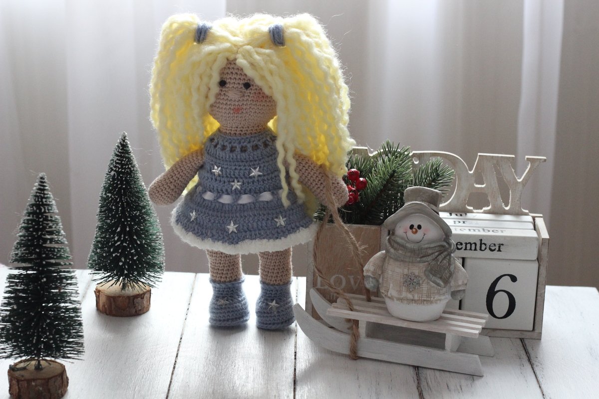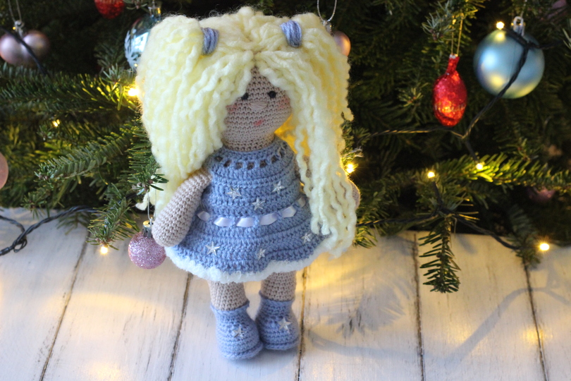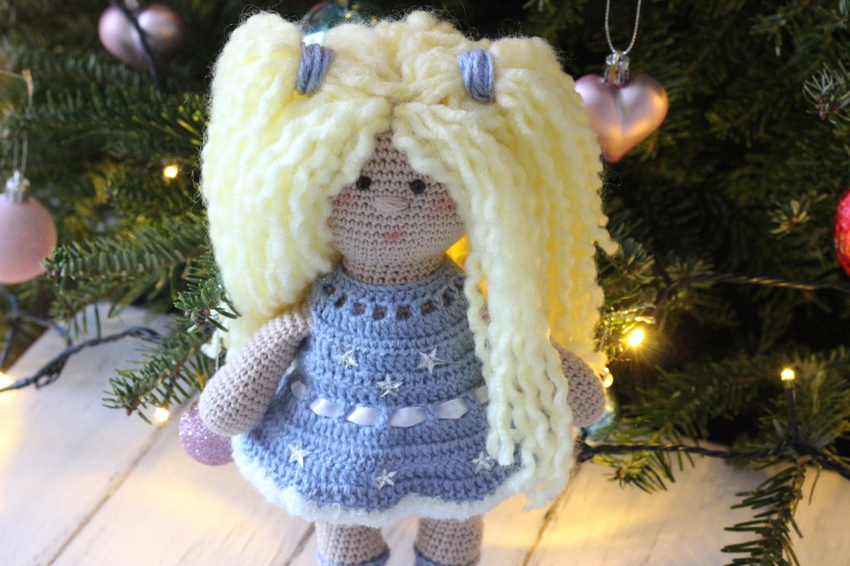 Du möchtest eine Puppe häkeln? Die Puppe Ellie ist das Niedlichste, was du häkeln kannst! Sie trägt ein wunderschönes blaues Kleid und Schuhe.