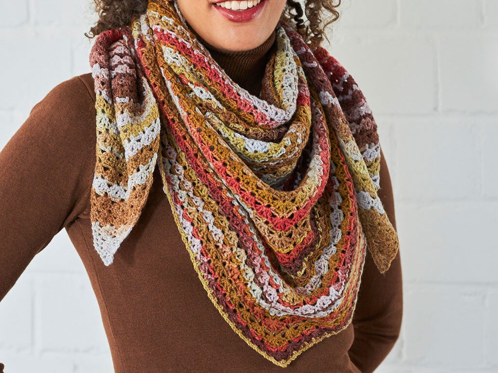 Das Granny-Muster sorgt für einen einzigartigen Look und macht das Tuch zu einem echten Hingucker. Der interessante Farbverlauf verleiht dem Tuch einen besonderen Touch und macht es noch eleganter.