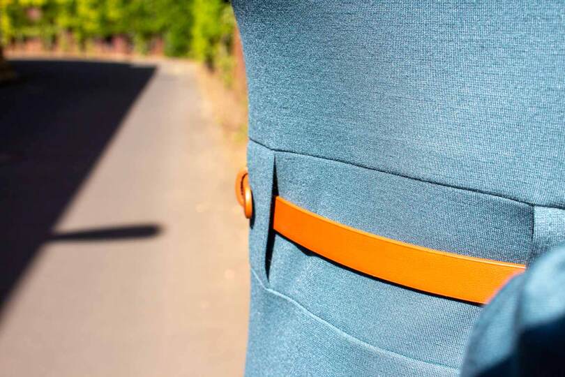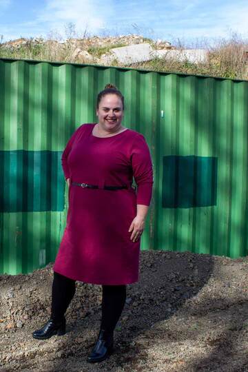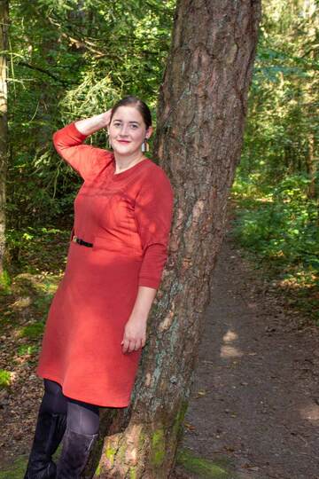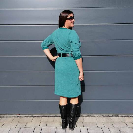 Dieser Schnitt für ein elegantes Kleid aus Maschenware mit langen und 3/4-Ärmeln, zwei Halsausschnitt-Varianten und zwei Gürtelschlaufen-Varianten, welches du sowohl zu festlichen Anlässen als auch als Business Outfit im Büro tragen kannst, trägt den schönen Namen "Über Pfützen hüpfen".