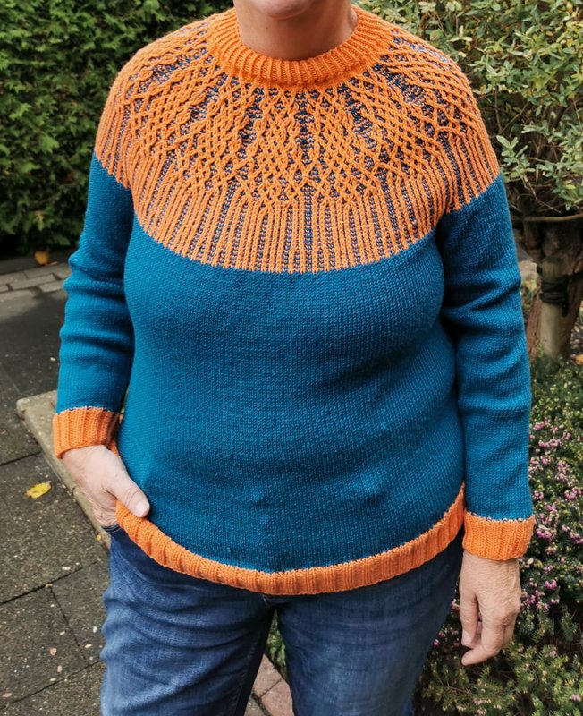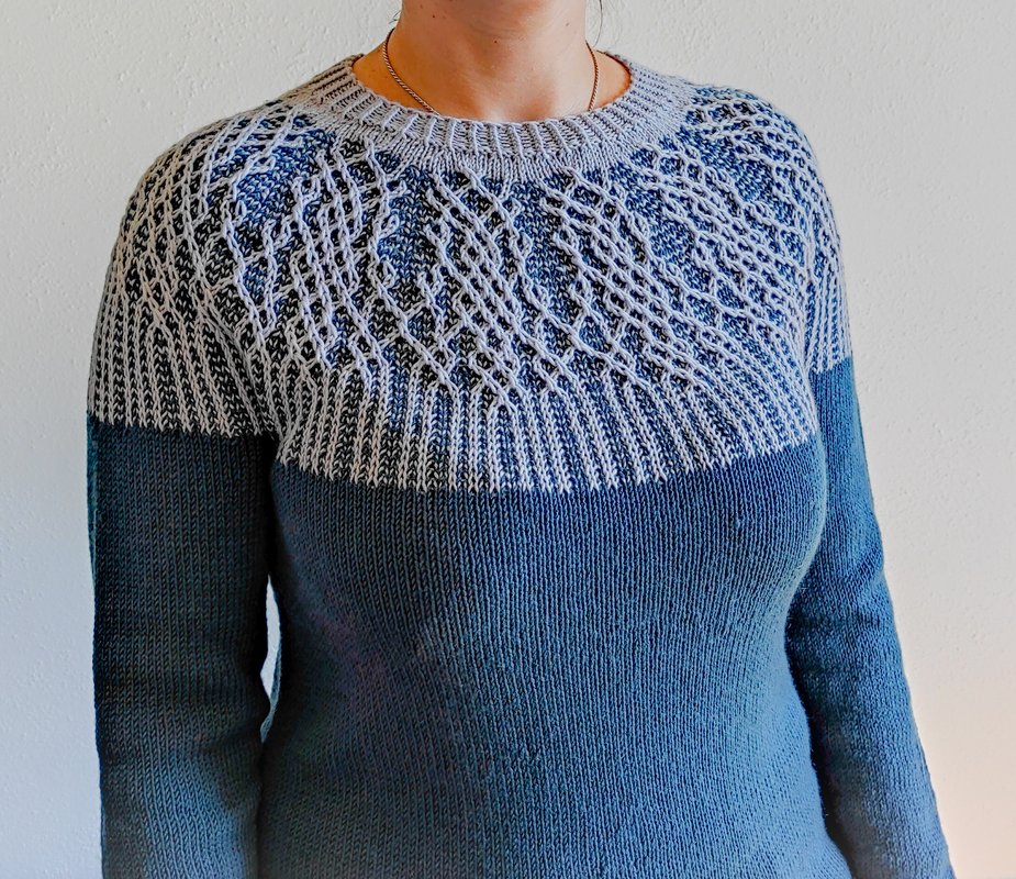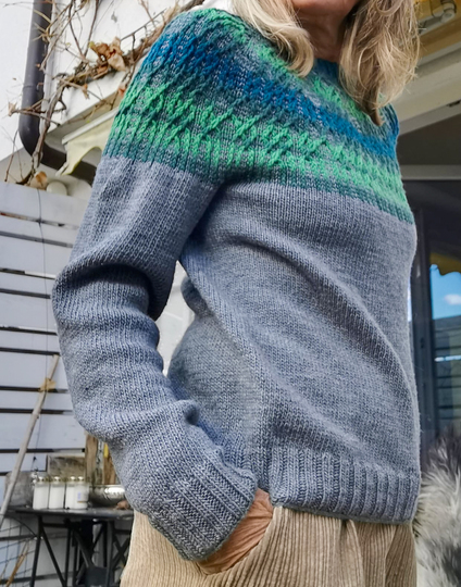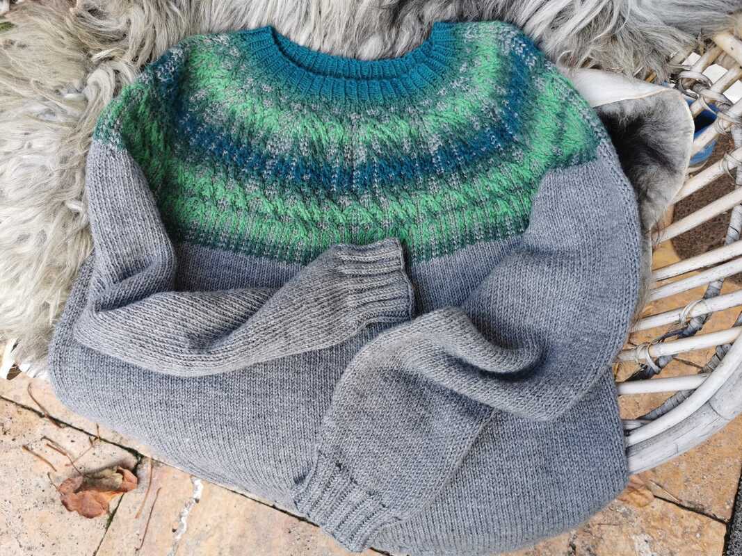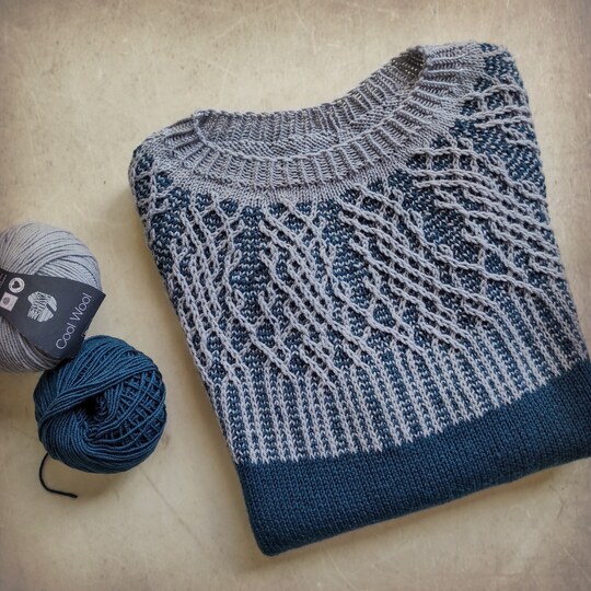 Du traust dich an das zweifarbige stricken noch nicht so heran? Hier hast du eine Anleitung die mit Hebemaschen, satt mit Colourwork, funktioniert. In jeder Reihe strickst du nur mit einer Farbe. Durch die Hebemaschen ergibt sich das schöne Muster in der Passe, die ein toller Blickfang ist. Und der Strickspaß wird nicht zu kurz kommen.