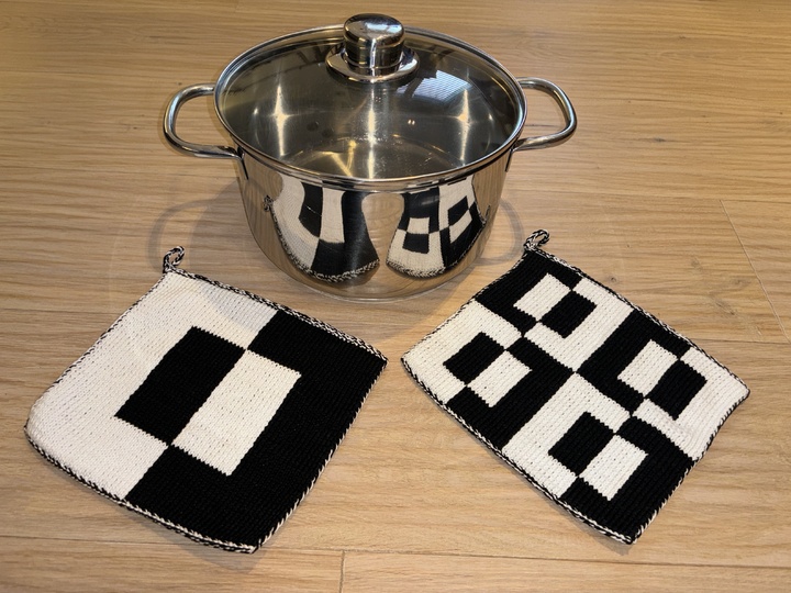 Ein Topflappen Design in schwarz-weiss mit klaren Linien passt zu (fast) jedem Küchendesign. Dieses Set besticht durch sein schlichtes und sehr klares Design. Die Wechselblöcke faszinieren rein durch ihre Geometrie und ihre endlose Wiederholbarkeit.
