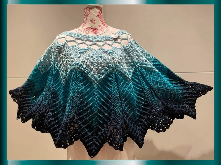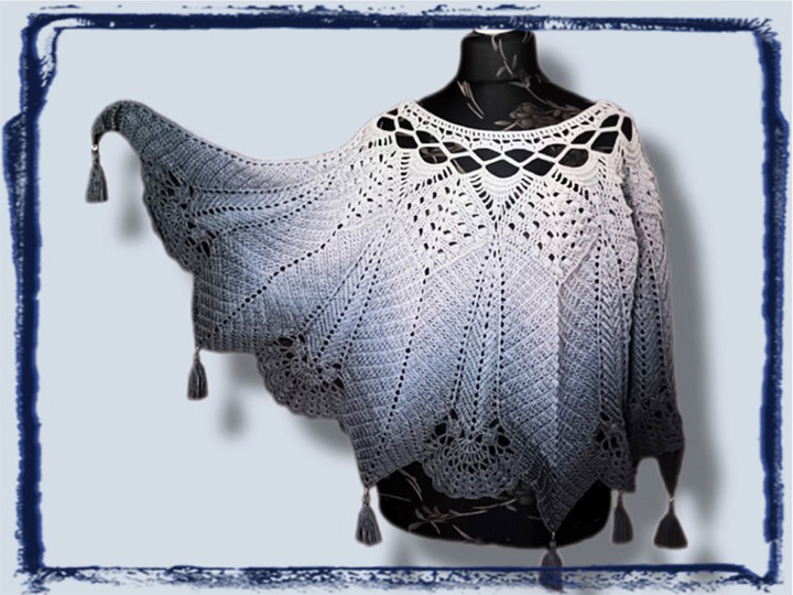 Häkelanleitung für den Poncho-Pulli „PoPu“ mit 10 Spitzen und abnehmbaren Quasten.