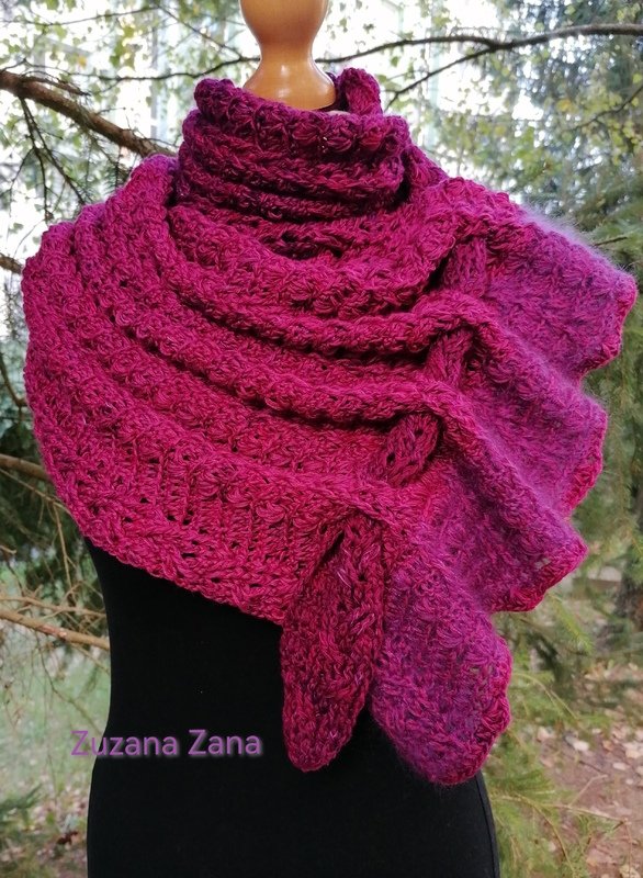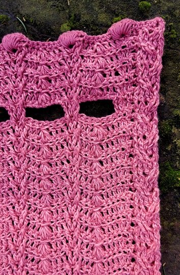 Verwendete Maschen: Luftmasche, Stäbchen, vordere und hintere Reliefstäbchen, vordere Relief-Doppelstäbchen, Büschelmaschen.