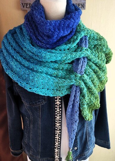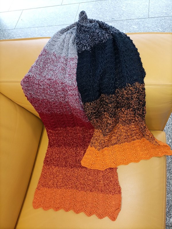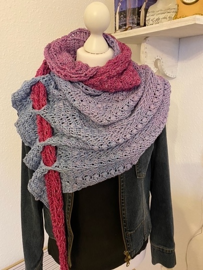 Besonders schön wird das Schaltuch mit Farbverlaufsgarn.