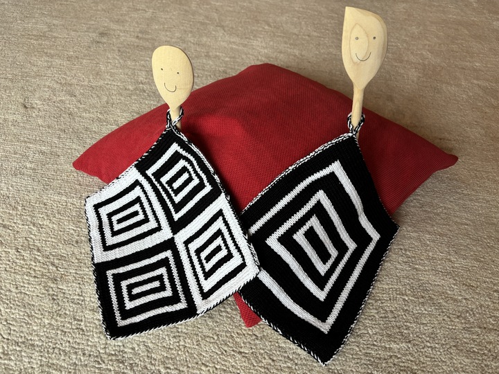 Diese Anleitung beschreibt detailliert, wie Du diese Topflappen stricken kannst. Die Anleitung ist geeignet für Anfänger in der Double Face Technik.