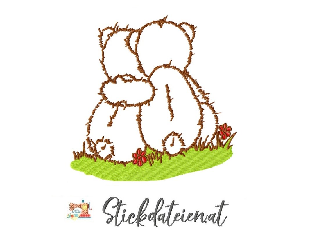 Digitale Stickdatei "Teddybären Umarmung auf der Wiese" – Herzliche Freundschaft