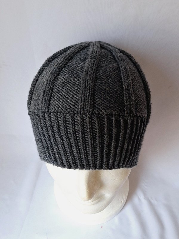 Die Mütze wurde mit Nadelstärke 4,0 gestrickt. Mit einer dünneren Nadel ergibt sich eine kleinere Grösse und kann dann auch von Frauen getragen werden.