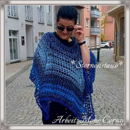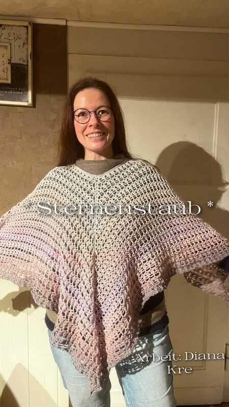 Vielseitig einsetzbar: Der "Sternenstaub" Poncho passt perfekt zu verschiedenen Outfits und Anlässen. Ob lässig kombiniert mit Jeans und T-Shirt oder elegant über einem Kleid getragen - du wirst viele Möglichkeiten finden, diesen Poncho zu stylen.