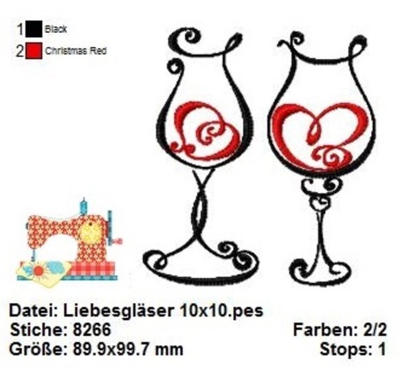 Bringe mit unserer "Weingläser mit Herz" Stickdatei Eleganz und Romantik in dein nächstes Stickprojekt – eine toastschöne Kreation erwartet dich!